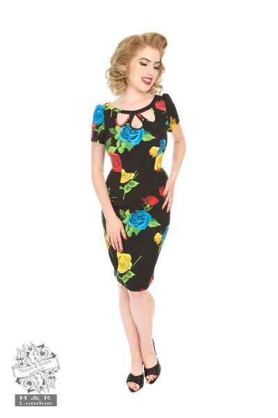 What a true vintage beauty to behold this autumn. The cut and style will have you dreaming and will have you feeling eager to flaunt this style on your day out, or why not add it to your collection of evening dresses. Ooo la la, it’s time to blossom. Our new addition will have you wondering whether vintage fashion has a season, while the colours on the print with bright bold roses in red, blue and yellow gives it the perfect vibrant look. Our vintage-inspired wiggle dress made from our stretchy Jersey cut to give you a figure-hugging silhouette accompanied with a beautiful cutout boat neckline to elongate that neck of yours. We’re sure you know it already, but it’s okay to look classy and fabulous at the same time.