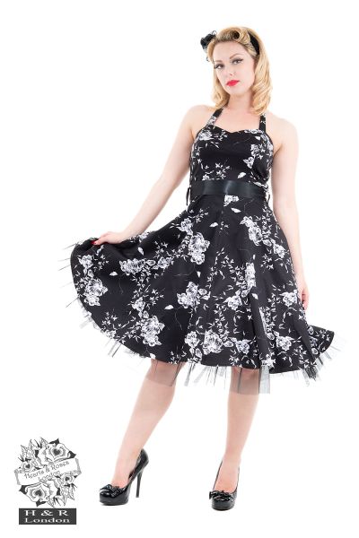 H&R London’s Vintage Floral Prom Dress is a subtle beauty. This striking flower print is so timeless; this beautiful halter dress will have you effortlessly collecting compliments!   Perfect for any vintage vixen, the Vintage Floral Prom Dress is made out of soft, stretchy cotton and has a built-in cotton underlining for extra volume. Halter dress ties at the back of the neck for extra adjustability, and comes with a black satin sash that ties at the waist.