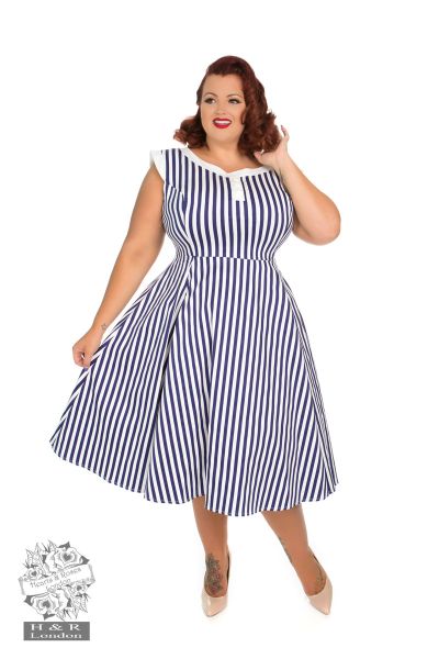 Strip off your summer wish list because our Blue Stripe Hepburn dress is the one for you.  Summer couldn’t get any better with this classic striped design. If you haven’t found your perfect summer match, why not go for the striped theme. The neckline features a round neckline, with a 3 button detailing sitting just on the chest. The soft stretchy cotton fabric is a joy to wear. You just can’t miss out on this classic vintage piece.