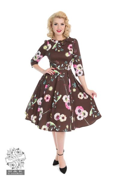 Why not flaunt our sumptuous AW17 chocolate poppy swing dress. This autumn delight is fabricated on a soft cotton brown fabric, with a charming poppy floral digital print. The design manifests a bold and beautiful presence and we are sure this presence will catch some eyes. With ¾ sleeves, the dress also details a small printed bow located on the left hand side of the round neckline. Sweet as chocolate!