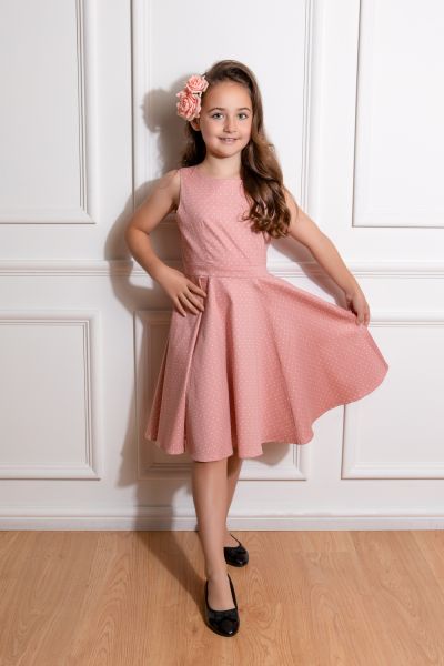 Introducing our Elodie Polka Dot Swing Dress in Kids, a charming vintage-inspired dress designed for the little fashionistas in your life. Let your child step into the world of timeless style with this playful yet sophisticated dress, featuring an adorable polka dot print that captures the essence of retro charm. The round neckline exudes classic simplicity. The swing skirt takes center stage, embracing the playful spirit of retro aesthetics. With each skip and twirl, the skirt gracefully sways, adding a touch of joyful charm to every movement. Perfect for playdates or special occasions, this dress brings a sense of fun to any event. You can match your outfit with your little one by wearing the twinning adult dress!