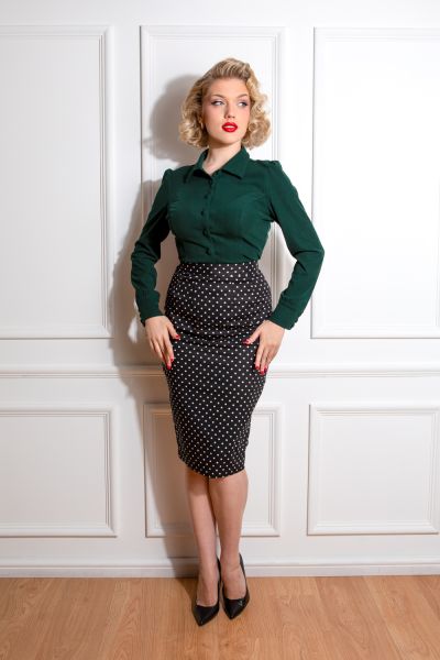 Gorgeous in green, our brand new Frida top is a perfect go to piece for the winter season. Made using a super stretchy fabric in a deep green colour, featuring functional front buttons to create an easy to wear relaxed shirt. The gathered full sleeves detail a sweet cuff with a keyhole and three button closure. The classic shirt collar balances the princess seams perfectly, emphasising that relaxed shirting look. Easy to pair with our Louisa check swing skirt or a pair of jeans, this shirt is multi-functional. Style it your way.