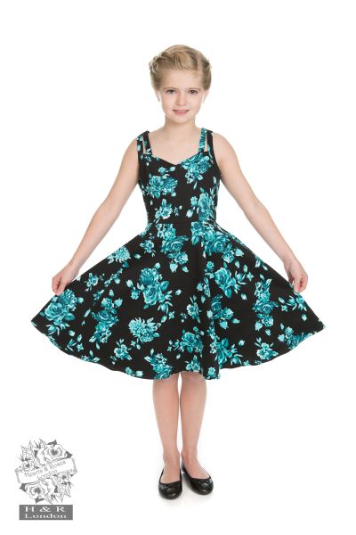 Have your child be your mini-me in Hearts & Roses little Hearts Collection! Outfit your little one in the same outfit as yourself and collect the compliments in our compliments in our Black Rosacea dress made out of soft cotton, your little one can and play comfortably and stylishly. Dress has blue satin waist band and its zip up the centre back.