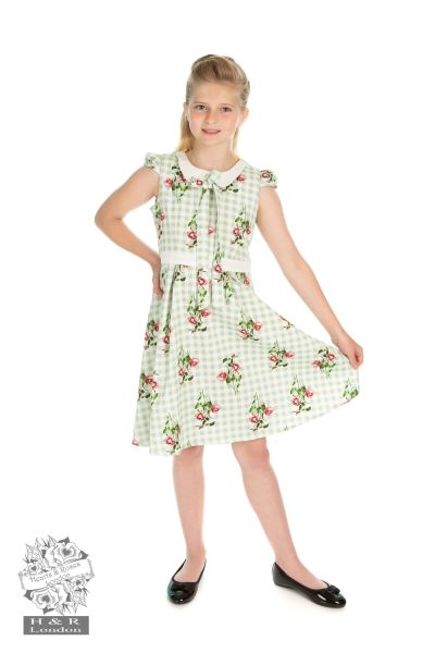 The Summer Rose swing dress is a new style which will melt your heart. Its gathered cap sleeves adds a sweet touch to this kids style. The waist pleats all around the dress allow for full movement so your little one can play with no restrictions. We have also added a rounded collar in white to match the stretchy waistband, topped with a cute bow at the neckline in the perfect summer print.