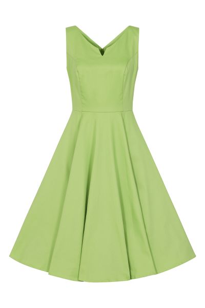 Gorgeous in a bright spring green, our brand new Greta Green Swing Dress is made for a new fresh season bursting with possibilities. The elegant rounded neckline with front notch is easy to wear and gives a sophisticated shape to the piece, alongside the v neckline at the back. The fitted bodice leads into a swing skirt which is great for dancing the night away during those long summer evenings. We have added our favourite hidden side pockets for extra ease, adding practicality and not compromising on style. This dress can be worn with one of our comfortable cardigans to add an extra layer if needed, or just pair with your favourite pair of shoes and you’re ready to go!