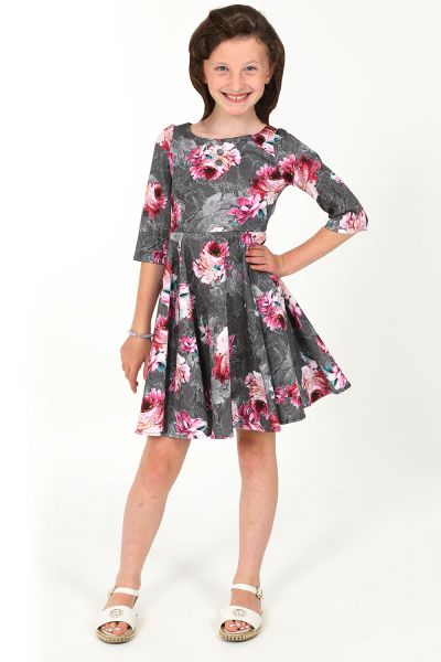 Welcoming our brand new Harriet Floral Swing Dress. Bursting with beautiful large winter florals, this style is made to be seen. The pink petals of the roses stand out against the grey background, making this an atmospheric number. The simple and stylish boat neckline is punctuated by three self covered buttons, which sit neatly on the bodice. The fitted waist balances with the flowing swing skirt, making this a fabulous homage to the 50s we know and love. Why not style this piece your way by adding your favourite jewellery or keep it simple and just wear your favourite pair of shoes, either way you’re sure to look the part this autumn/winter.