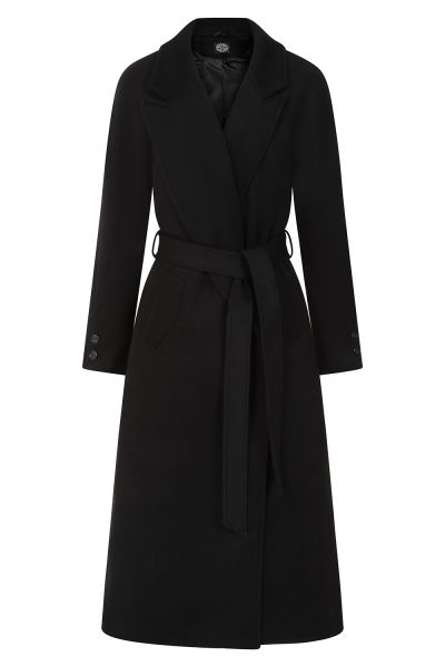 Effortlessly chic and endlessly wearable, our brand new Janelle Black Coat is the perfect outer layer for transitional weather and cooler months alike. Designed with a lapel collar and raglan sleeves, it offers a relaxed silhouette that drapes beautifully over any outfit. The relaxed fit allows for easy layering, while the tie belt with belt loops lets you cinch the waist for a more defined shape. Functional as well as stylish, this coat features side entry pockets for everyday convenience and a back vent that enhances movement and comfort. Whether paired with tailored trousers or worn over a dress, this timeless piece adds an element of understated elegance to any wardrobe.