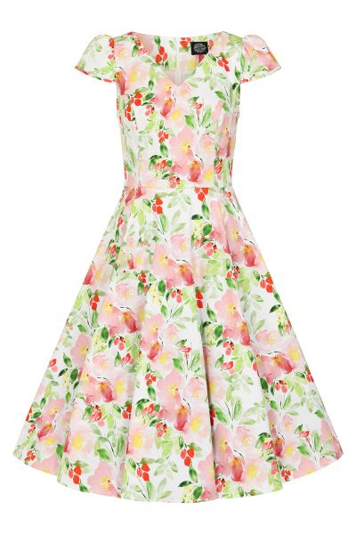 Welcoming our newest style to our SS24 collection, the Larisa Floral Swing Dress. This style is bursting with spring energy, with its lively floral print and fresh white base. This cheerful number will bring a breath of fresh air to your wardrobe, making it a great go to piece this season. The style is designed with a chic v-neckline and sweet cap sleeves. The bodice is fitted and balances perfectly with the swinging skirt which is full of movement. We have added our favourite hidden side pockets for extra ease. This style can be worn as is or with jewellery of your choice.