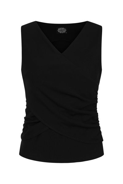 Turn heads with our stunning brand-new Maddison Black Ribbed Top, designed for both comfort and style. Featuring a flattering V-neckline and unique front seam detailing, this sleeveless top adds a touch of elegance to any outfit. The gathered side seams and layered front detailing create a beautifully shaped fit, hugging your curves in all the right places. Perfect for both casual outings and dressier occasions, this versatile piece can be dressed up or down. Embrace style and confidence with this sleek, effortlessly chic essential.