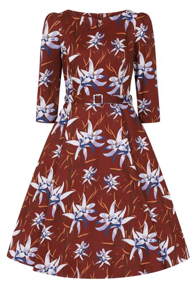Bursting with beautiful large purple florals on a bed of orange leaves and a red base, our new Maria swing dress is a great way to keep the winter months full of colour. Featuring a classic boat neckline with a front notch detail. The simple and classic shape allows the floral print to speak for itself. Perfect for a stroll through the city or a picnic in the park, this versatile style makes it a perfect go to winter swing. With an air of ease oozing from the print, the hidden side pockets help to keep this style practical while holding all your personal treasures. Style this swing dress up or down with simple or extravagant accessories to style it your way!