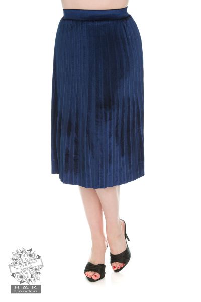 Navy Blue Pleated Velvet Skirt