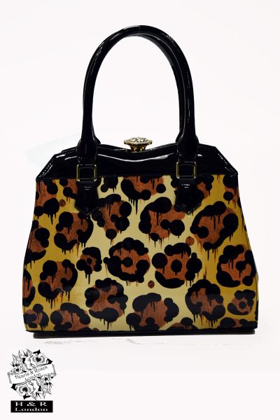 Hearts & Roses London’s Pixie handheld tote bag front have been crafted with yellow, orange and black floral effect print with clip fastening and a detachable shoulder strap. This versatile bag is finished in luxurious gloss PU leather and has a practical internal zip compartment for all your essentials. The gold tone hardware with finest work of studs is just perfect match to it.